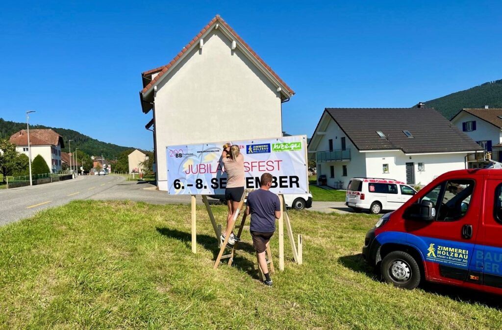 Diese Tag wurden an beiden Dorfeingängen die Werbeblachen montiert:
