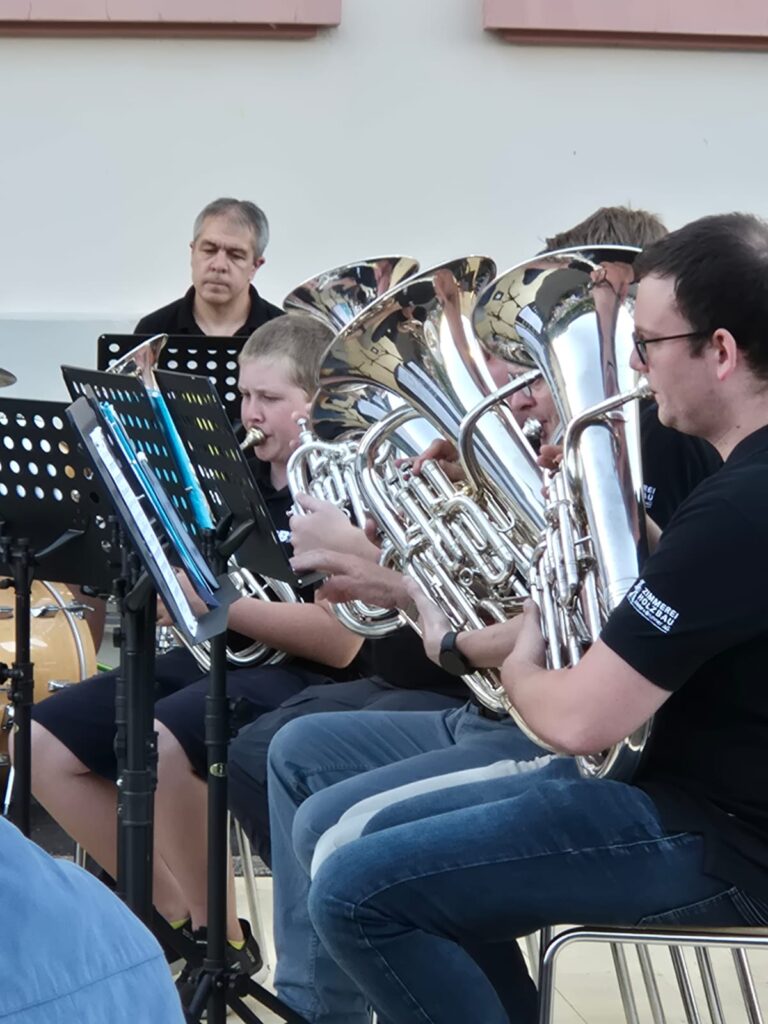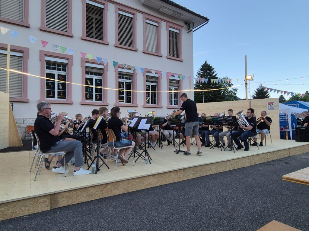 Am Abend trat die Brass Band Frohsinn unter der musikalischen Leitung von Andrea Probst zum ersten Mal beim Brunnenfest auf und spielte ein festliches Ständchen.