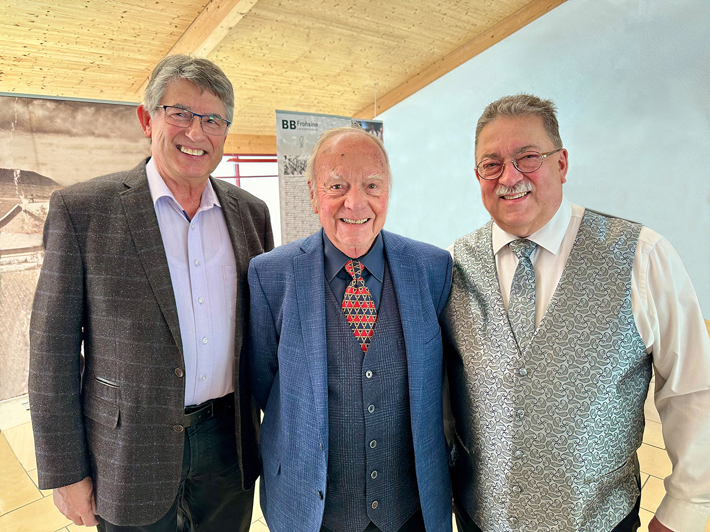 Der Zufall wollte es, dass unsere drei Ehren-Dirigenten zur gleichen Zeit die Jubiläums-Ausstellung besucht haben. Ich habe die Gunst des Momentes genutzt und ein Bild der drei prägenden Persönlichkeiten der Frohsinn gemacht!